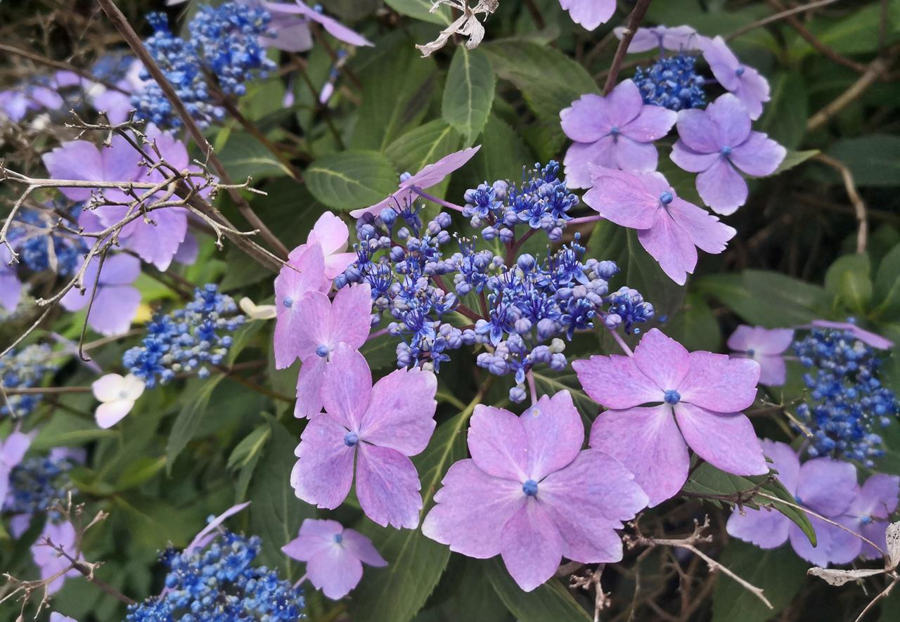 Wunderschöne Blumen an einem Haus am Waldrand
