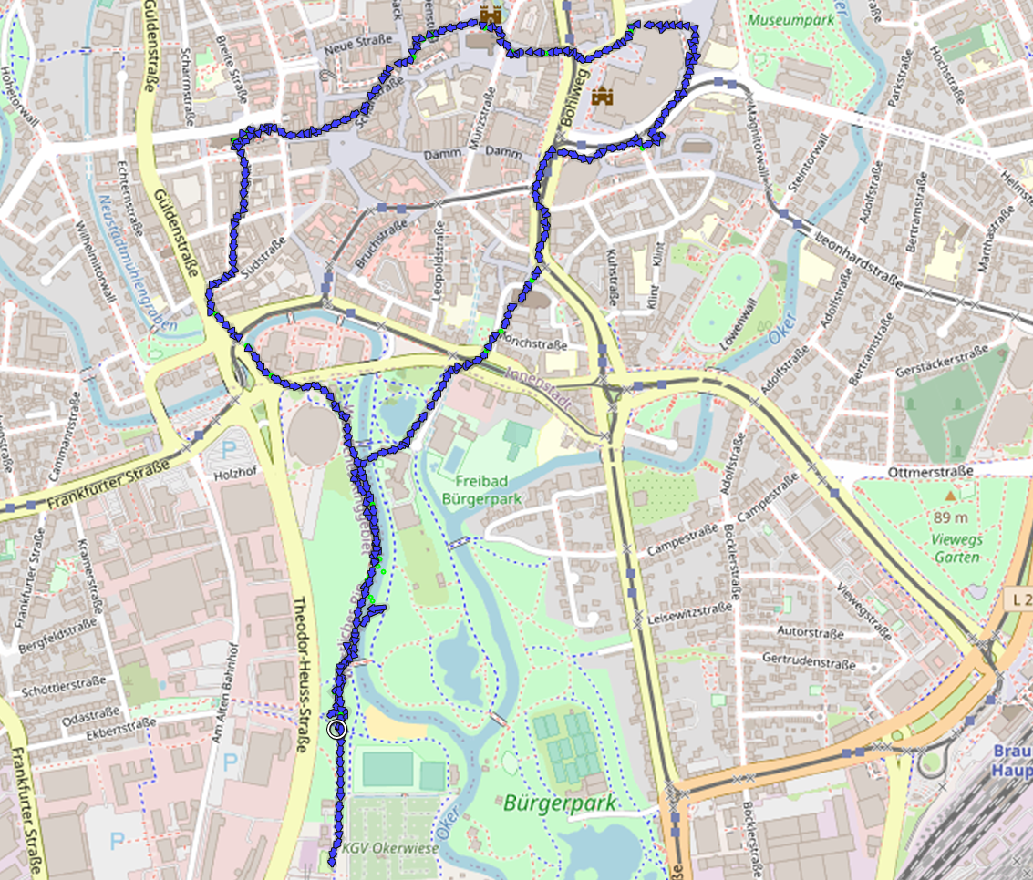 Karte unserer Stadtwanderung in Braunschweig