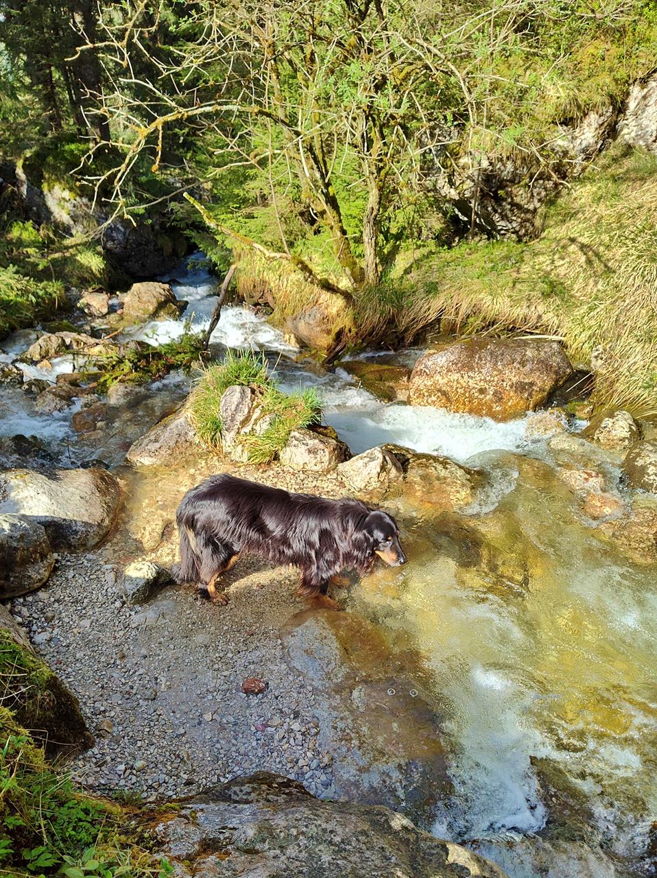 Doxi stärkt sich am Dalfazer Bach