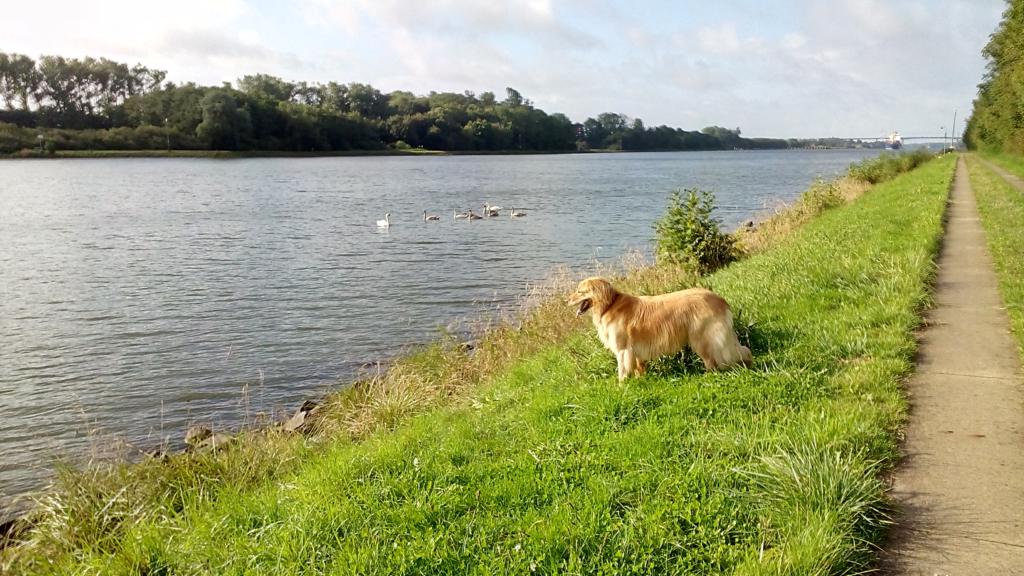 Erstaunlich grün der Kanal mit zahlreichen Wasservögeln.