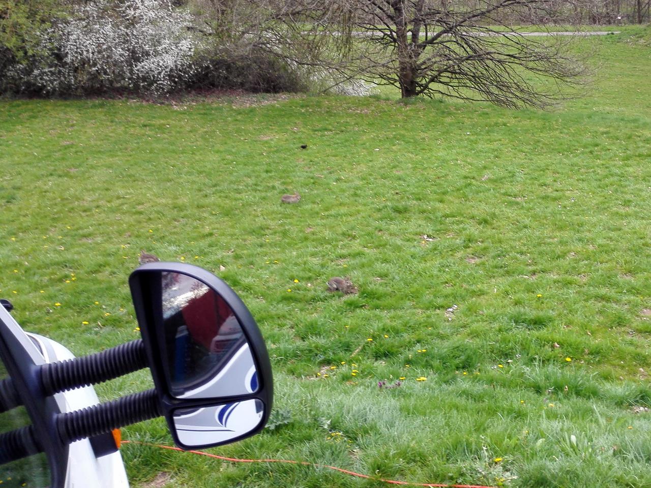 Die Osterhasen sitzen direkt vor unserem Wohnmobil