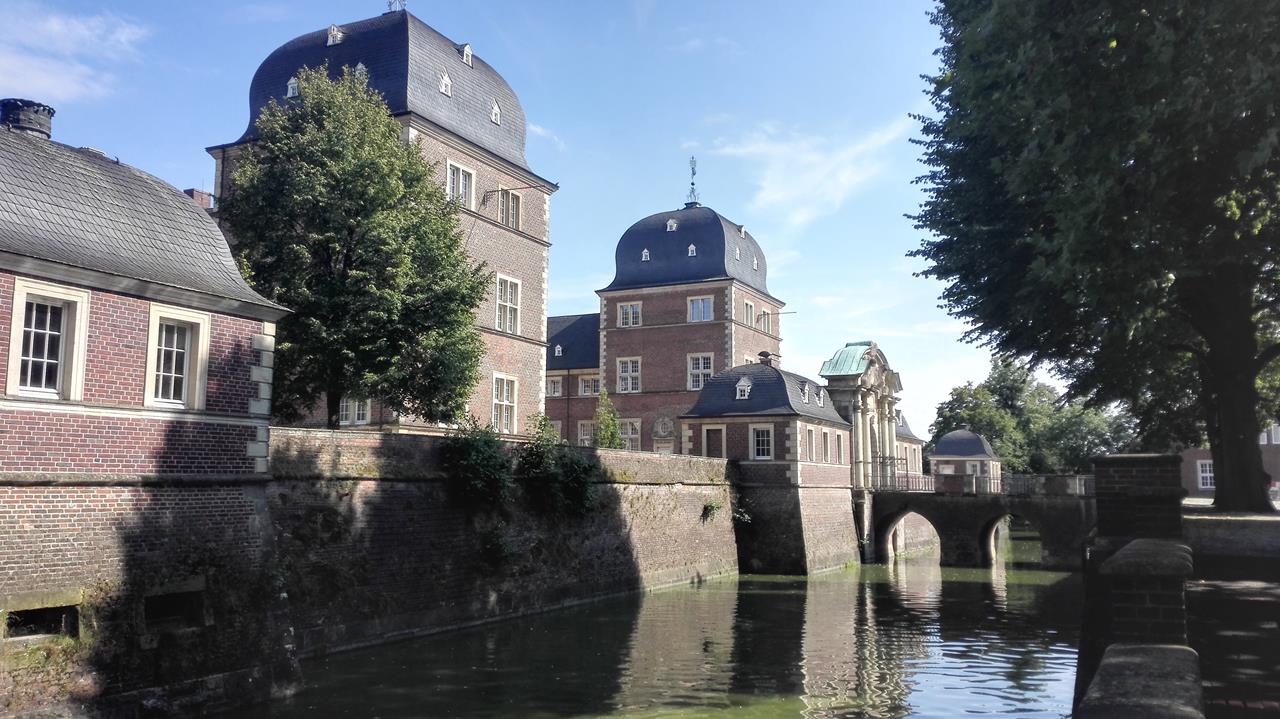 Seitenansicht auf den Zugang zum Schloss