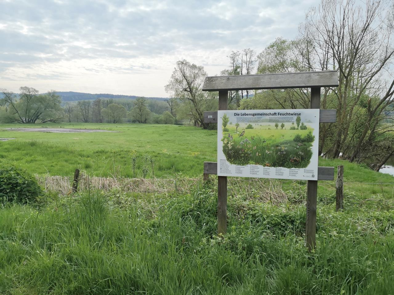 Infotafel an den Feuchtwiesen in einem Kinzigbogen