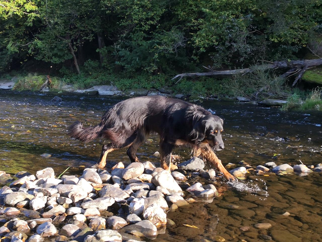 bad_sobernheim_okt_2021_234_1280x961 ← Zurück Weiter → Doxi tastet sich vorsichtig im flachen Kiesbett der Nahe voran
