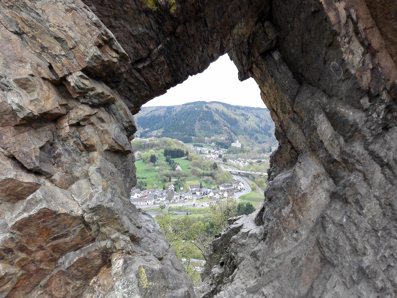 Blick durchs Teufelsloch auf Altenburg an der Ahr