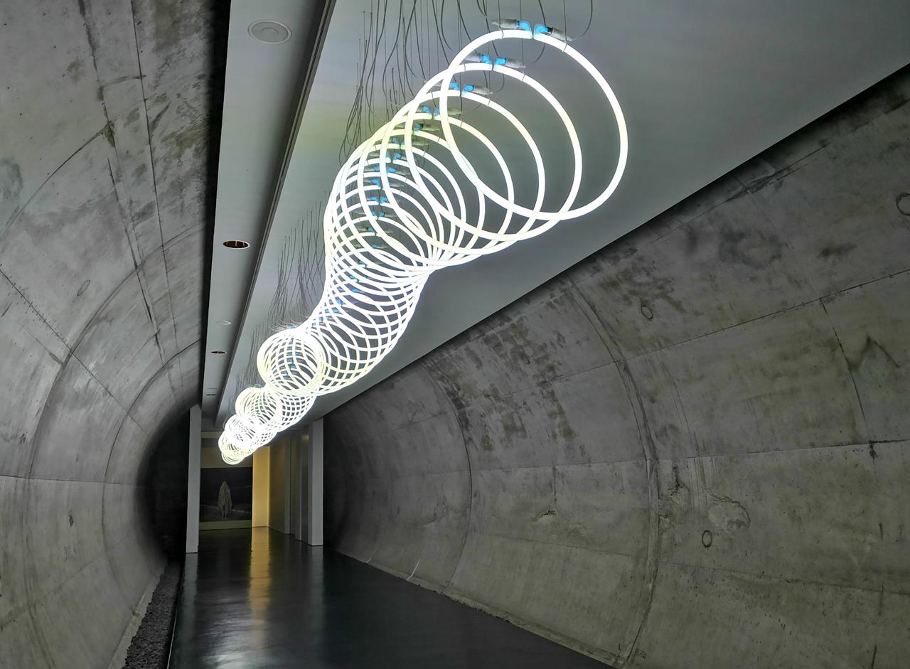 Lichtinstallation im Tunnel unter den Gleisen