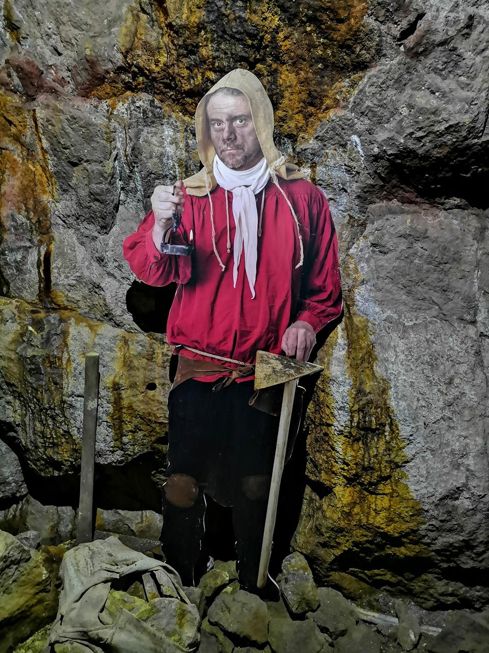 Die verschiedenen Aufgaben im Berg werden durch Pappkameraden illustriert