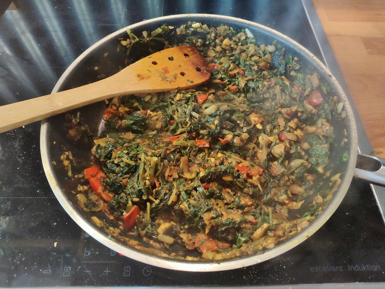Spinat, Tomaten, Knoblauch, Zwiebeln, Ingwer