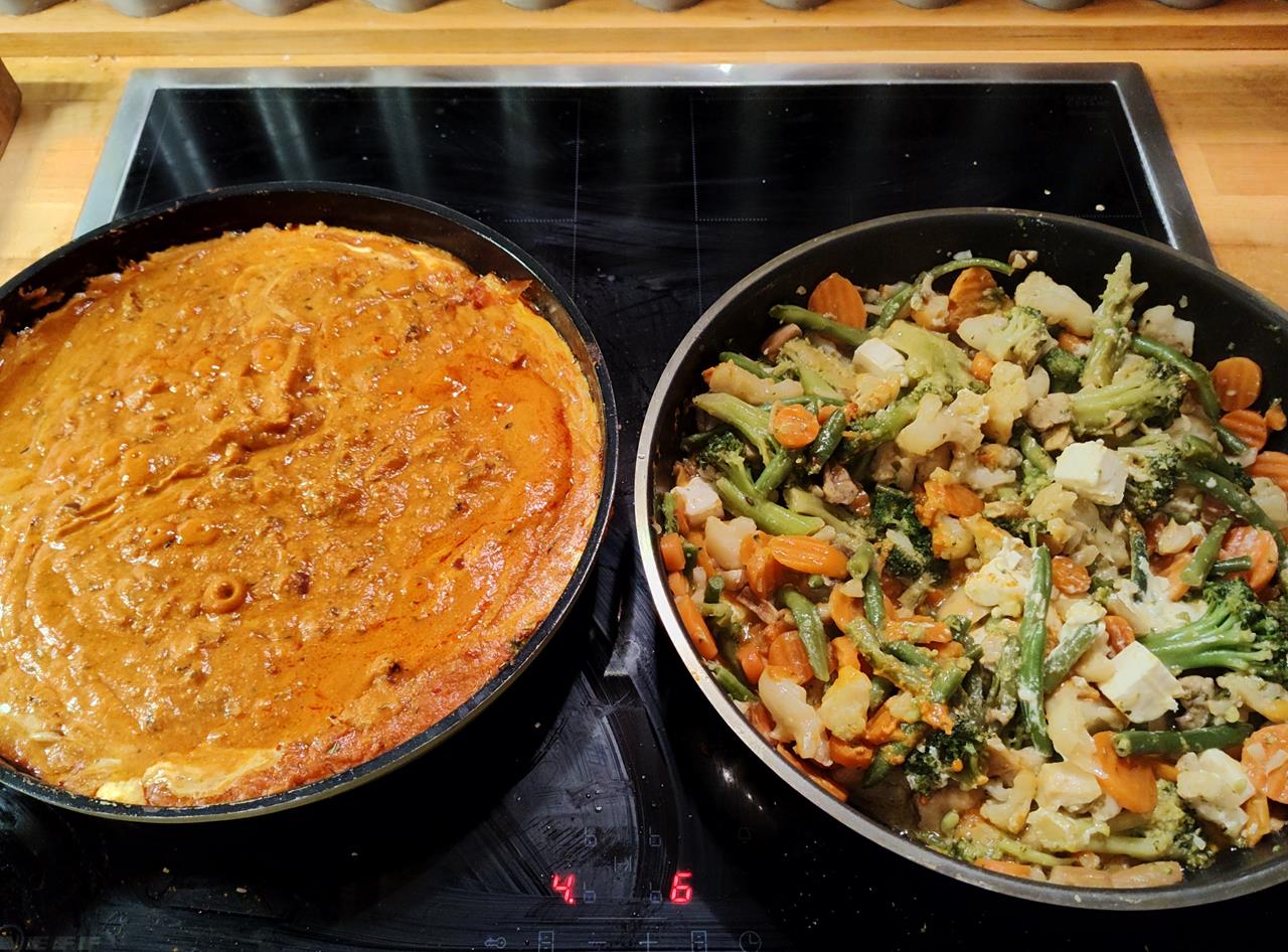 Das Curry und das Gemüse werden getrennt gekocht.