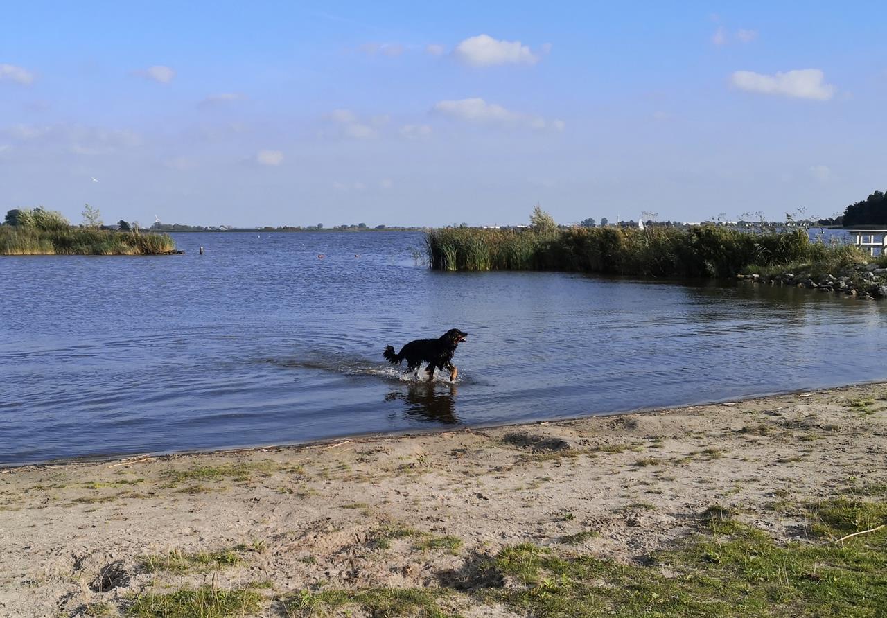 Doxi holt Stöckchen aus dem Schwimmbereich