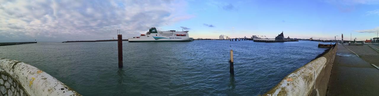 Panoramabild vom Einlaufen einer Irland-Fähre