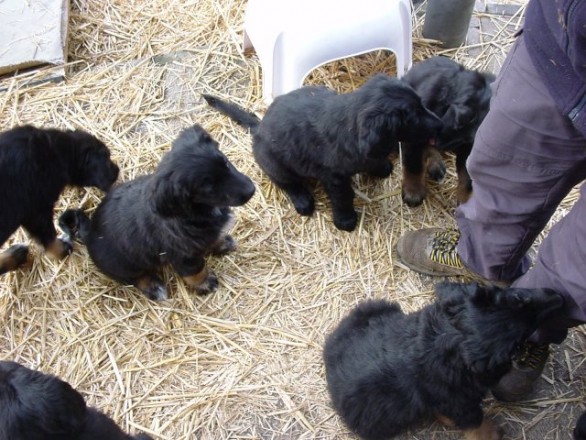 Dreimal hat sich Alwin in den vierzehn Tagen mit Bloxi gezankt (also eigentlich sie mit ihm und immer wg. Fressen), zweimal auf den Büroteppich gekotzt und einmal ist er mir im Feld kurz abgehauen, einem Hasen hinterher.