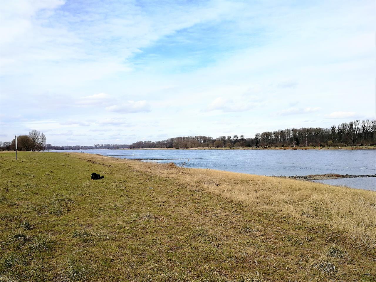 Kurz vor Zons. Auf der anderen Rheinseite liegen die Urdenbacher Kämpen.