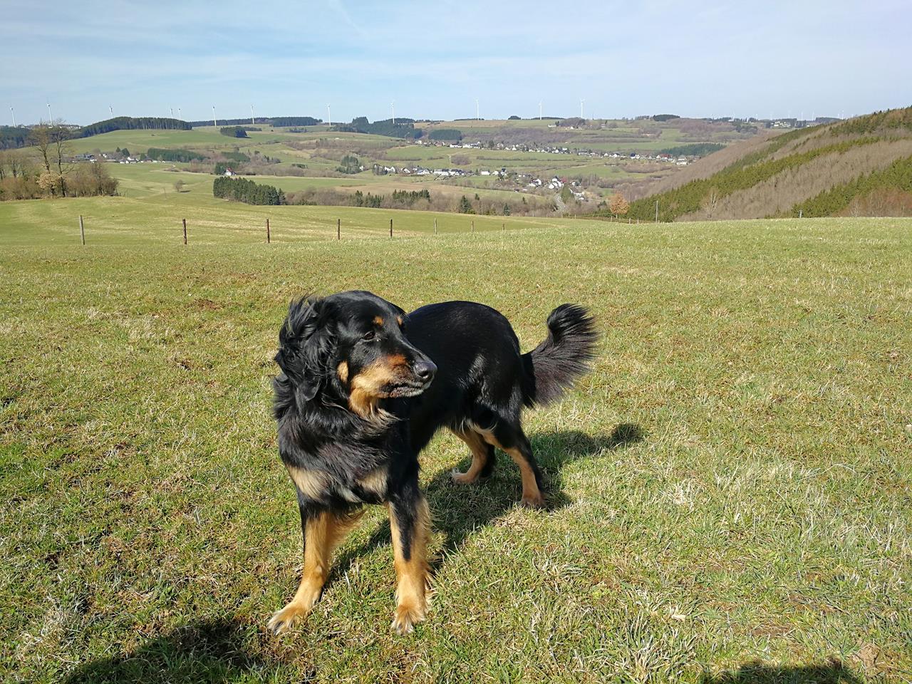 Doxi auf den windumtosten Höhen des Fuchsbergs