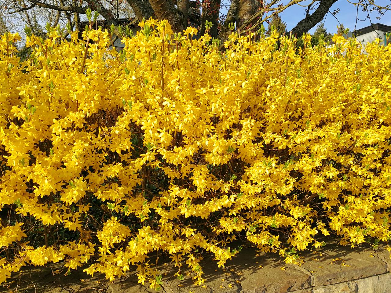 Blühende Forsythien am Ortsausgang von Idstein