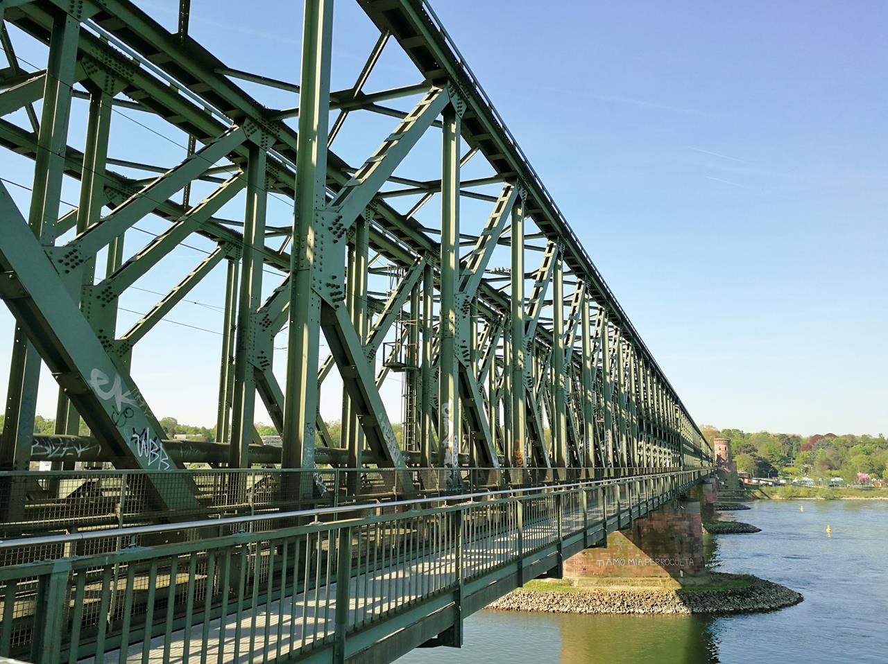 ← Zurück Weiter → Die Eisenbahnquerung Südbrücke, ein gern genutzter Weg über den Rhein auch für Radfahrer und Fußgänger