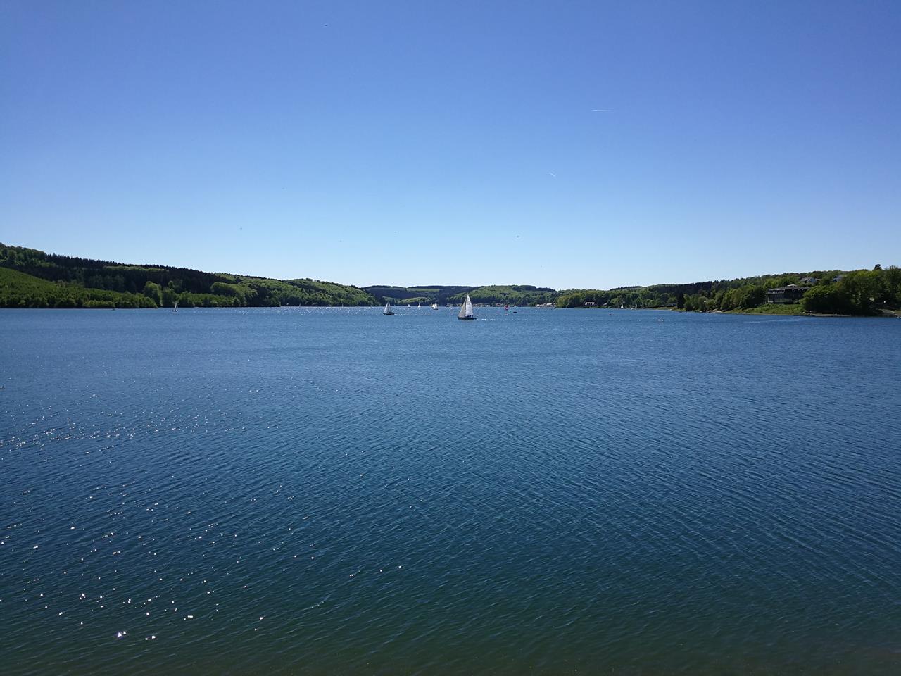 Am Mittag sind zahlreiche Segelboote auf dem See unterwegs