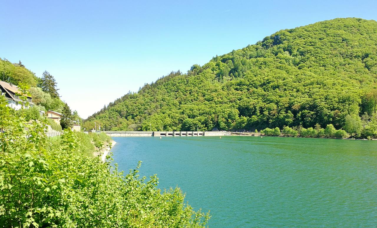 Wir nähern uns der Staumauer. Man sieht, der See ist gut gefüllt.