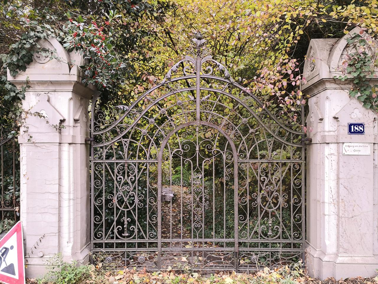 Altes, kunstvolles Gartentor an einem Haus an der Moerser Straße