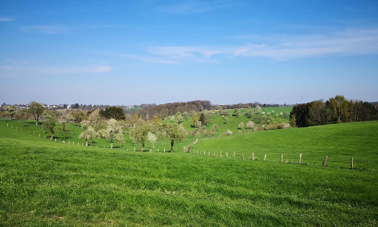 Blick in die Obsthaine entlang des Weges