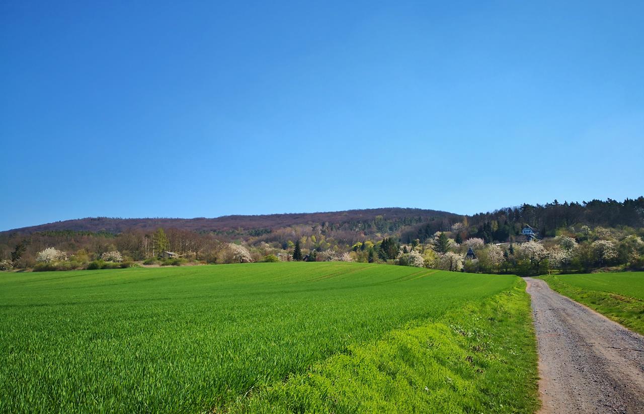 Blick vom Stausee hinauf zum Kyffhäuser-Wald