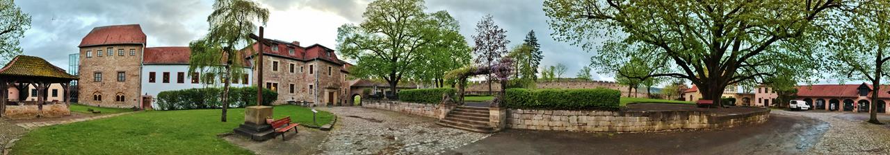 Panoramabild vom Innenhof der Burg