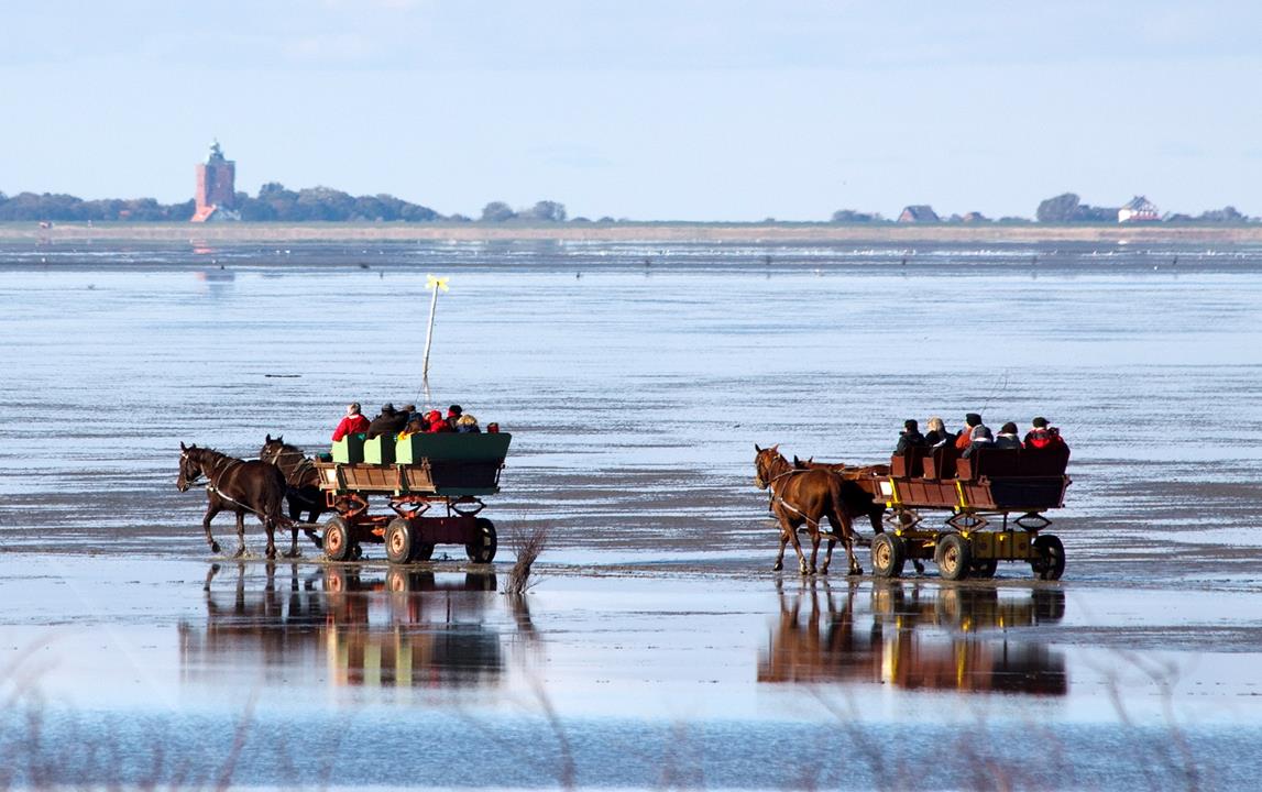 Mit Pferdekutschen übers Watt zur Insel Neuwerk