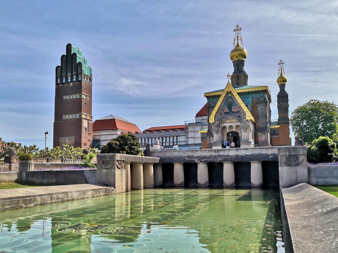 darmstadt_mai_2022_090_1280x959 ← Zurück Weiter → Lilienbecken vor dem Hochzeitsturm und der Russischen Kapelle
