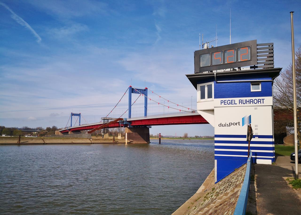 ← Zurück Weiter → Hafenmeisterei von Duisburg-Ruhrort mit Pegelmeßstelle an der Friedrich-Ebert-Brücke