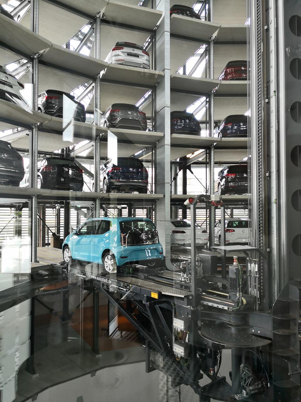 ← Zurück Weiter → Hier wird ein Fahrzeug aus seiner Parkposition herausgeholt und anschließend automatisch in die Übergabehalle geschoben