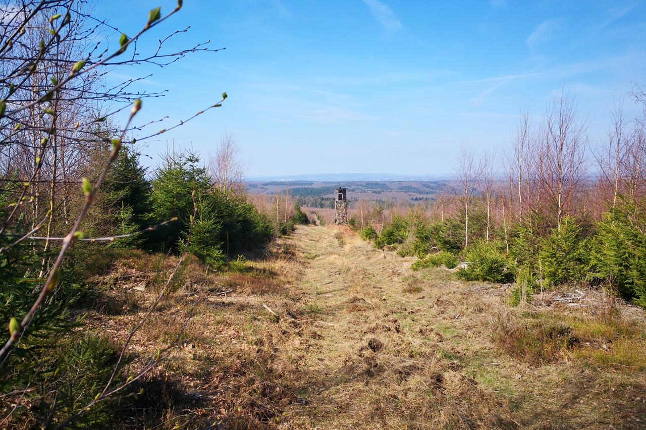 Da hinten, der Hochstand, da gibt es bestimmt eine schöne Aussicht!