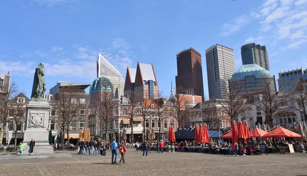 Blick vom zentralen Marktplatz zum Hochhausviertel