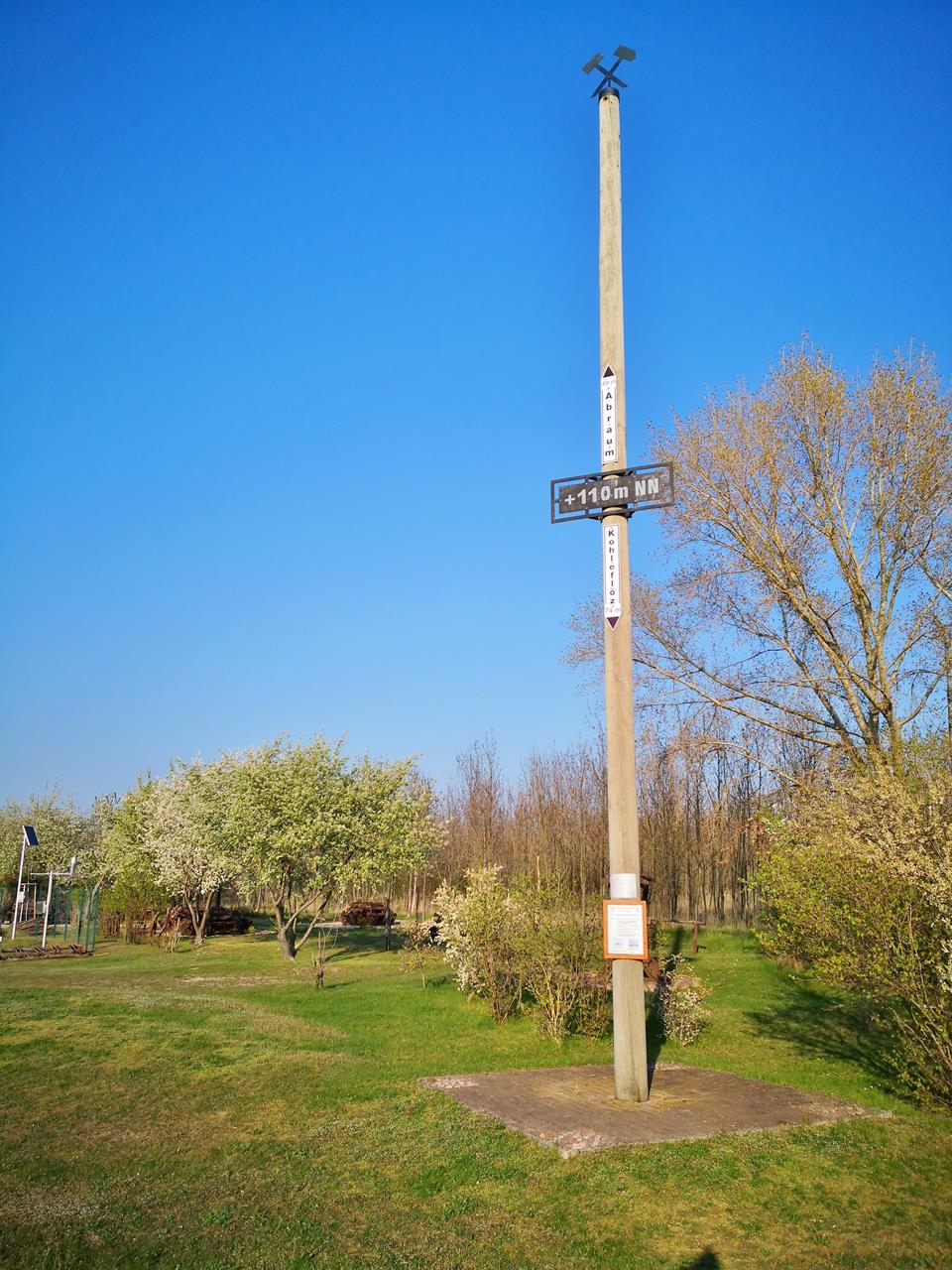 Marke der Höhe der Abraumhalde und Tiefe des Baggerlochs