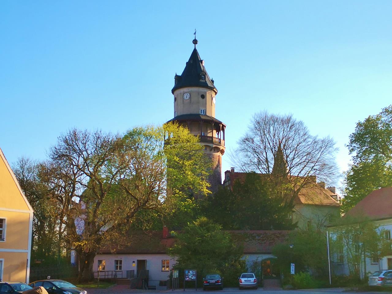Der runde Bergfried ist der älteste noch erhaltene Teil von Schloss Wiesenburg