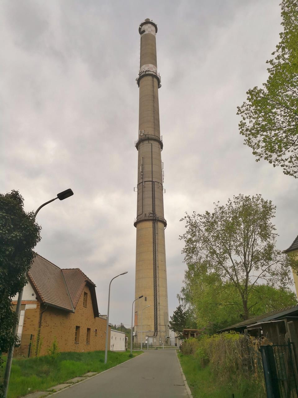 ← Zurück Weiter → Weithin sichtbare Landmarke – der 130 Meter hohe Schornstein des früheren Fernwäremkraftwerks in Werder/Havel aus DDR-Zeiten