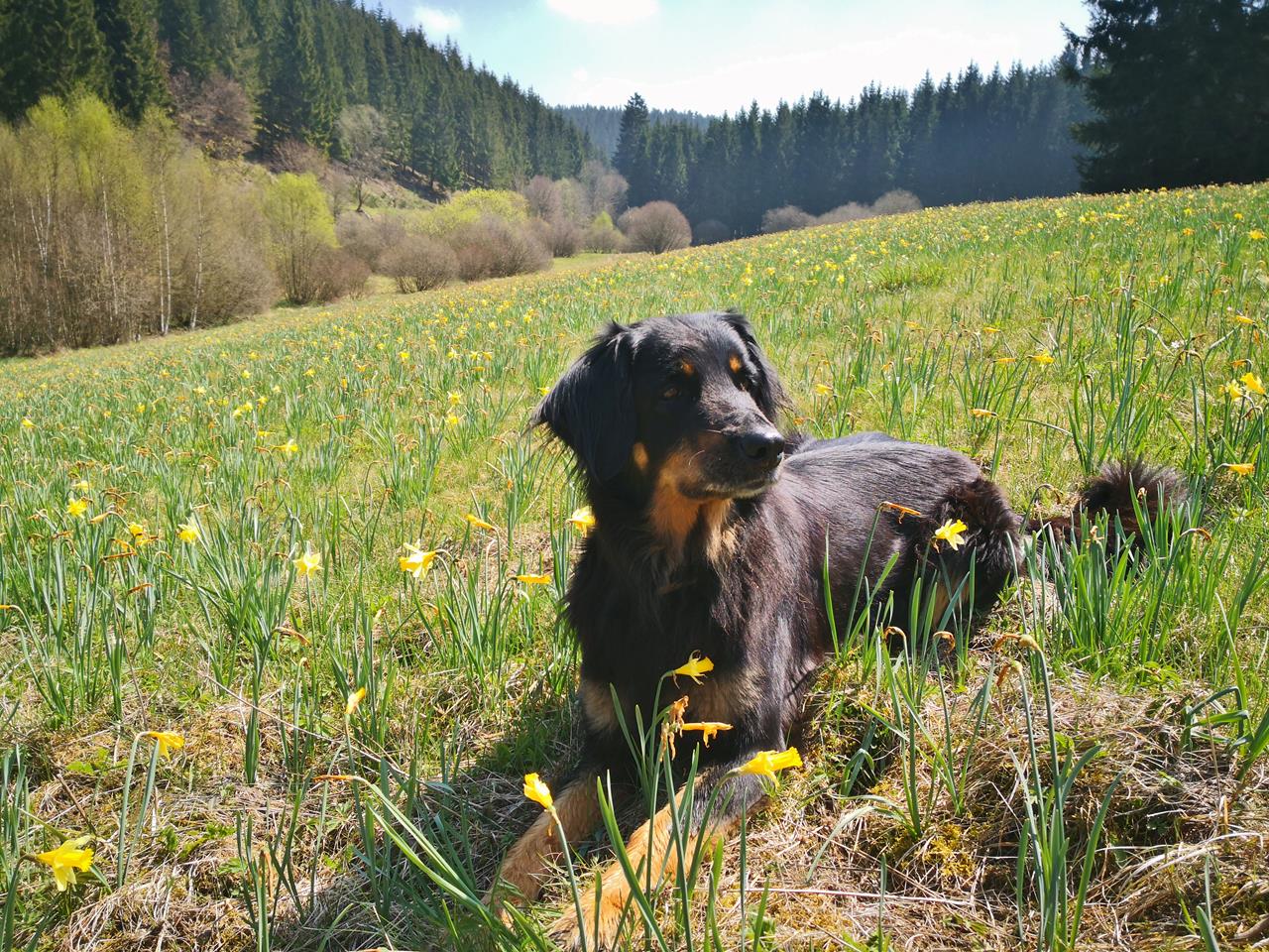 Doxi in den Narzissen