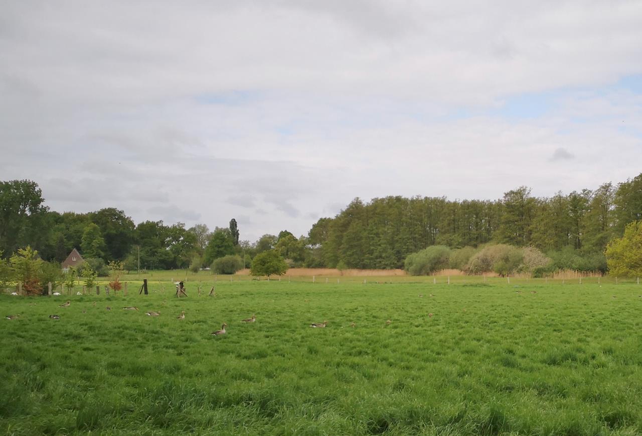 Auf den frisch ergrünten Wiesen rund um die Seen fressen sich Wildgänse satt