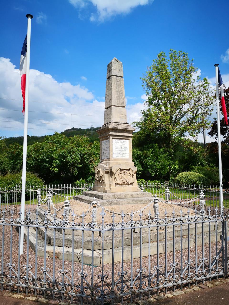 ← Zurück Weiter → Französisches Kriegerdenkmal für die Gefallenen des Ersten und Zweiten Weltkriegs am Moselufer in Sierck-les-Bains
