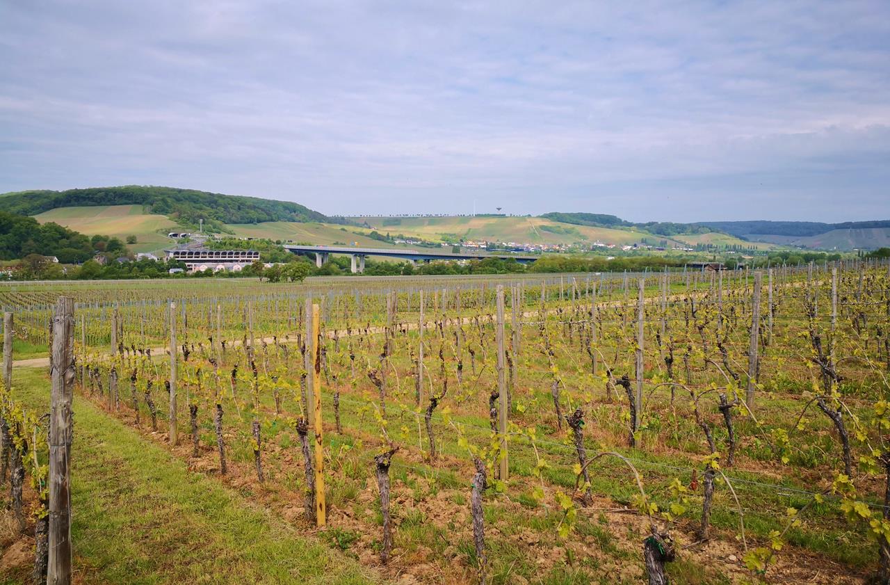 Blick von Perl zur Autobahnbrücke über die Mosel