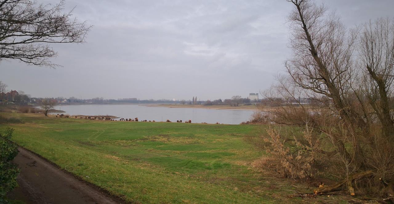 Blick Richtung Düsseldorf am rechten Rheinufer