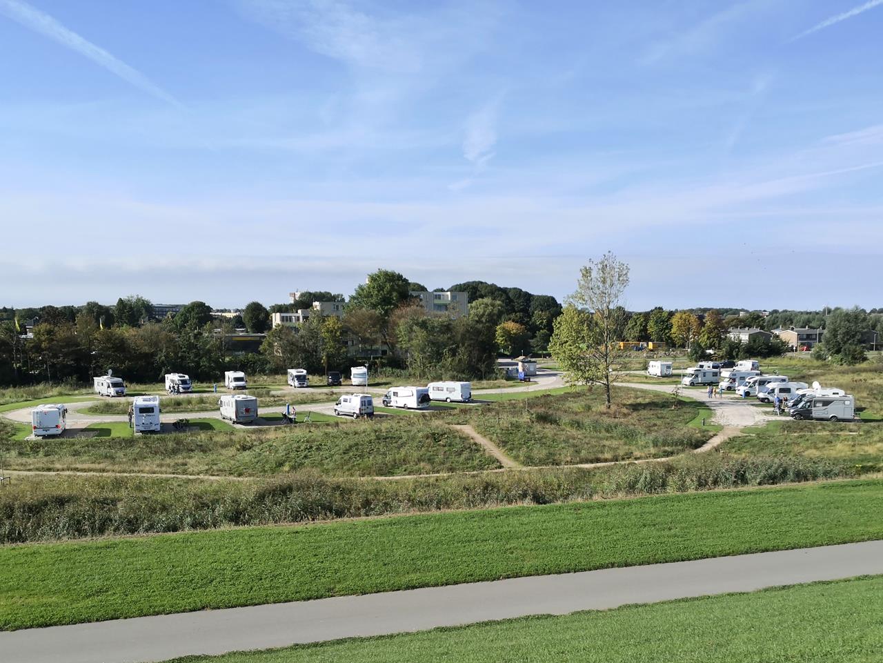Blick vom Deich auf den Womo-Stellplatz