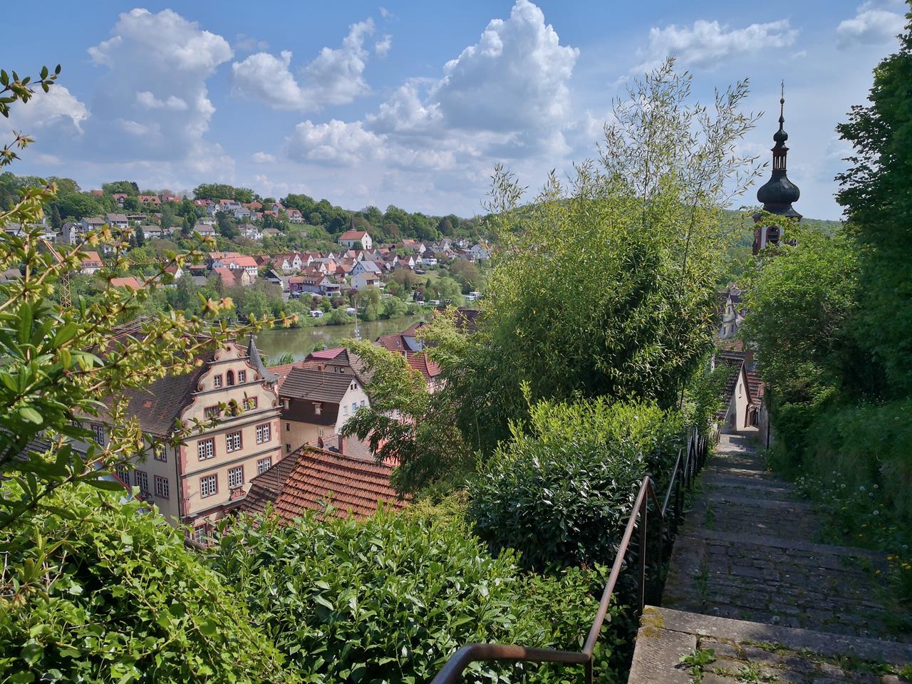 Blick von der Burgtreppe hinunter nach Rothenfels