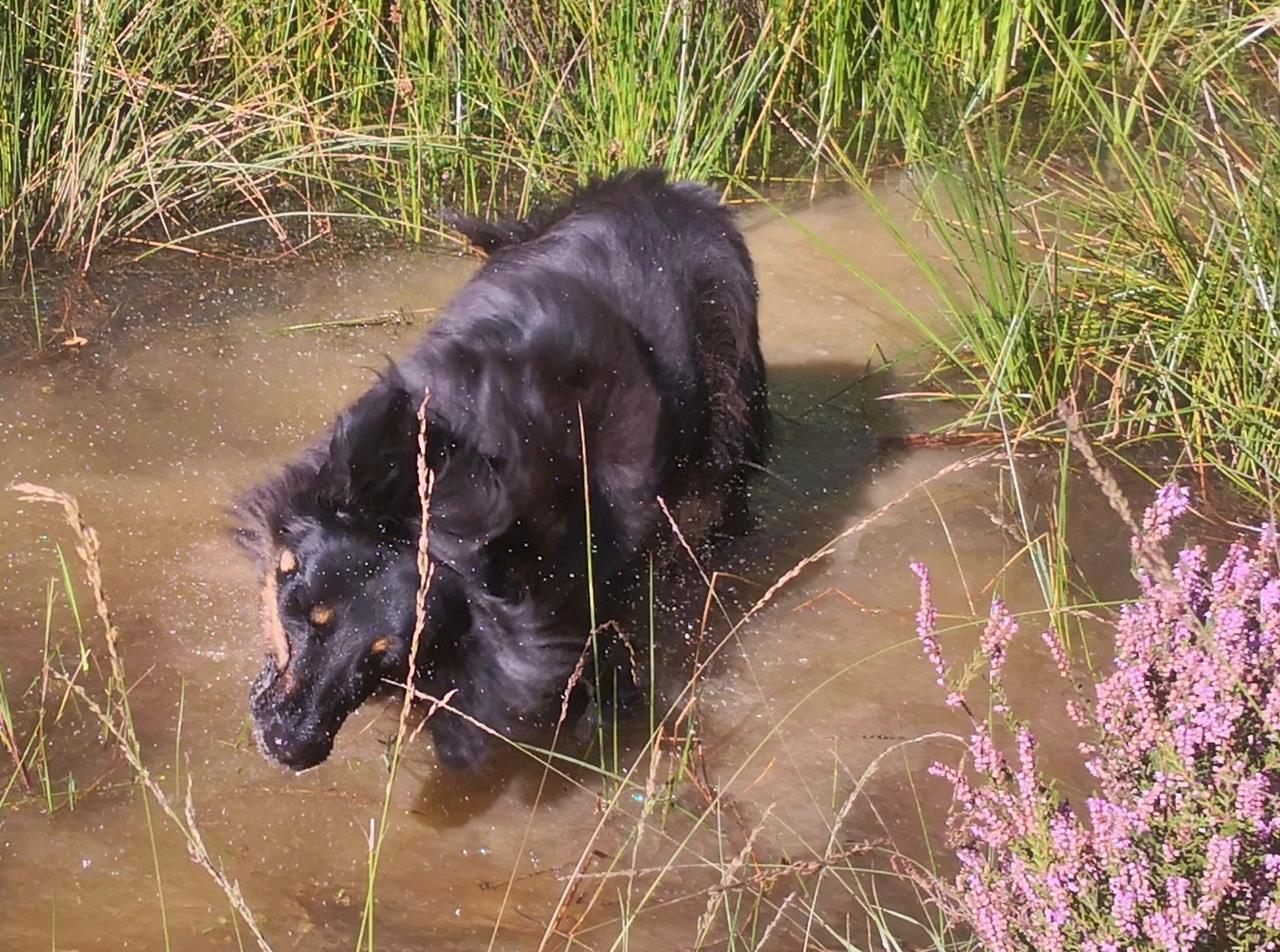 Doxi schüttelt sich ausgiebig nach dem Trinken