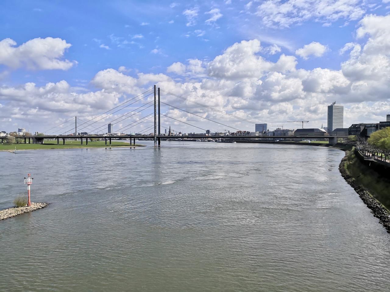 Blick vom Medienhafen zur Altstadt am Rheinufer