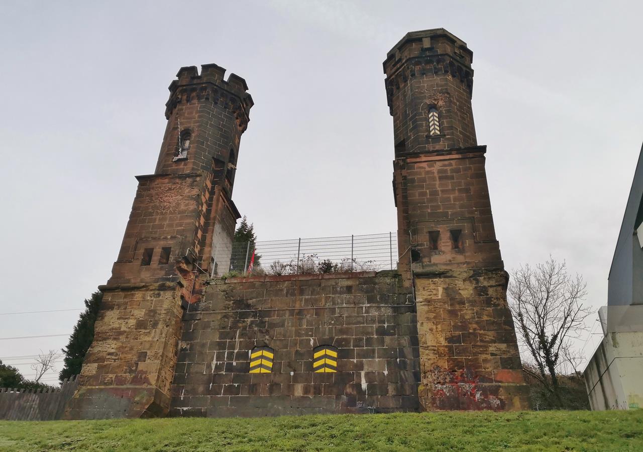 duesseldorf_dez_2019_009_1280x901 ← Zurück Weiter → Verbliebene Türme der alten Eisenbahnbrücke über den Rhein, die im Zweiten Weltkrieg zerstört wurde