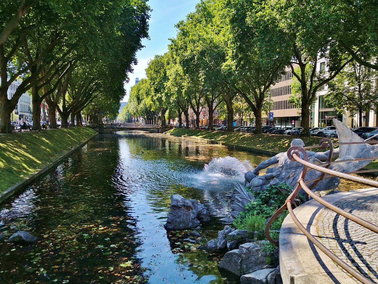 duesseldorf_jul_2022_028_1280x960 ← Zurück Weiter → An der Kö: Blick über den Tritonenbrunnen von 1902 auf den Stadtgraben