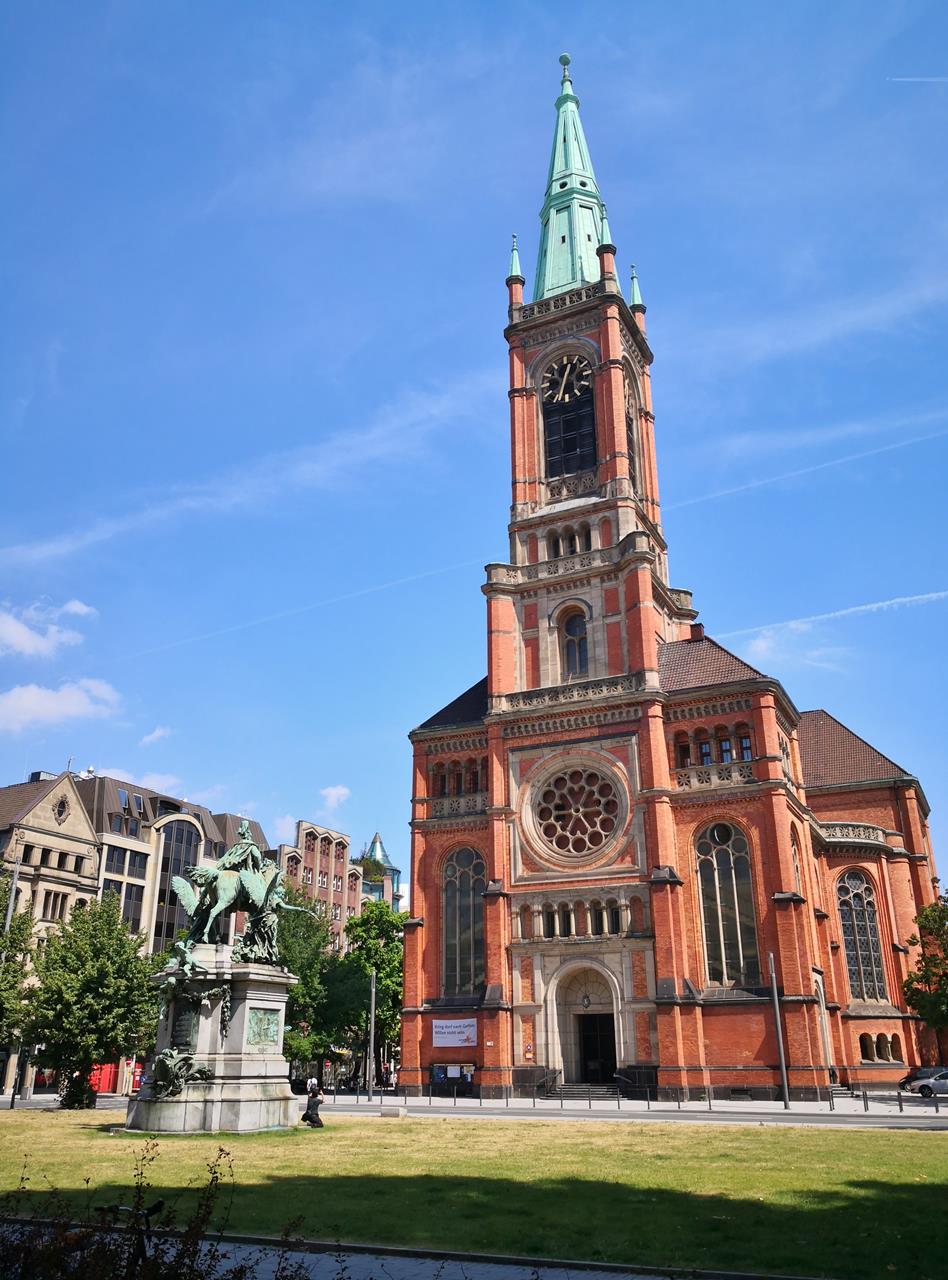 Ev. Johannes-Kirche vor Kaiser-Wilhelm I-Denkmal