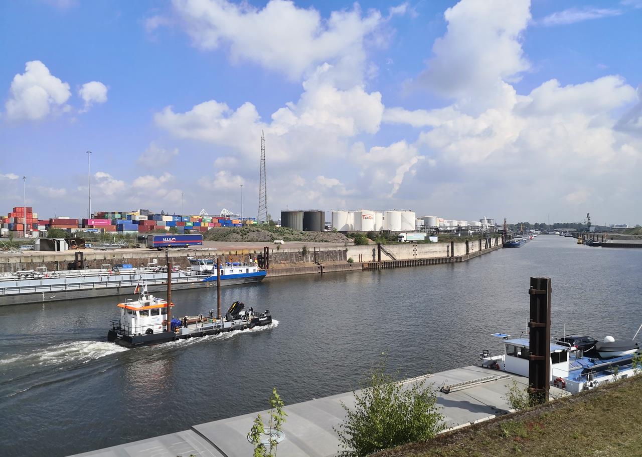 duisburg_mai_2021_030_1280x913 ← Zurück Weiter → Blick vom Pontwert in den Hafenkanal und der Einfahrt zum Hafenbecken A