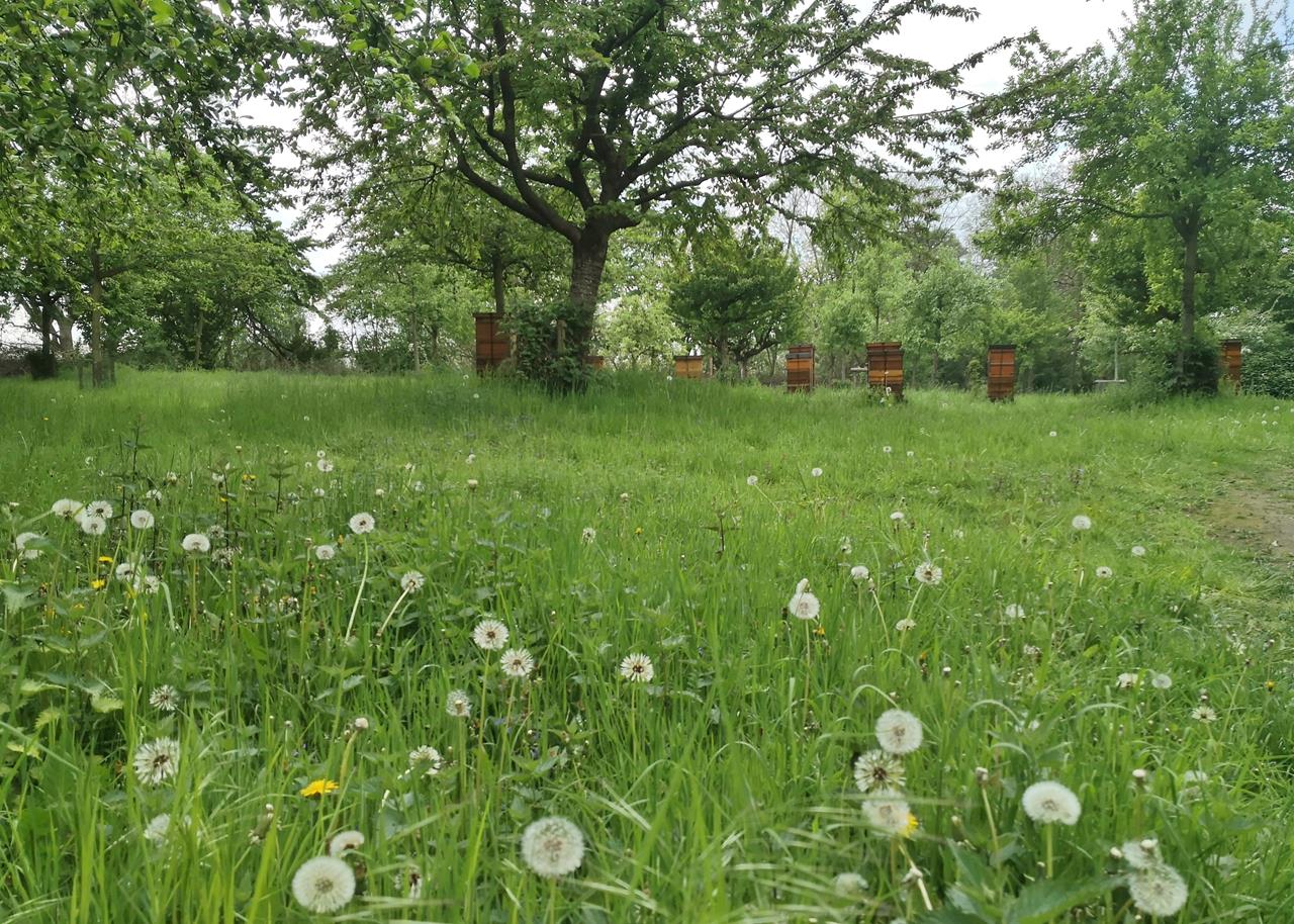 duisburg_mai_2021_037_1280x914 ← Zurück Weiter → Streuobstwiese mit Bienenstöcken auf dem Pontwert an der Ruhr