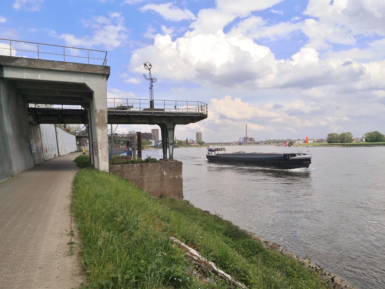 Rheindeich mit Industrieanlagen auf Homberger Seite